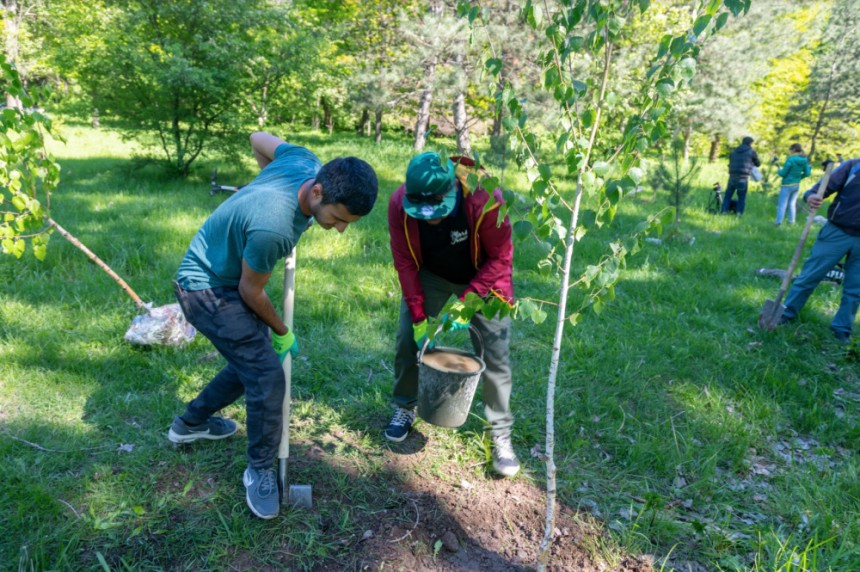 На минувших выходных, 5 мая, в Карагачевой роще прошла акция «Посади дерево», организованная Американским университетом в Центральной Азии совместно с Советом выпускников АУЦА и Французско-кыргызской ассоциацией экотуризма (ФКАЭ).