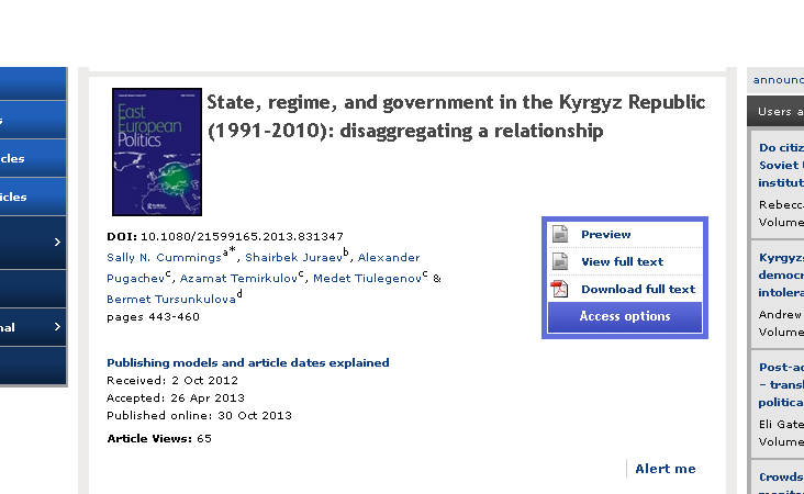 ICP Faculty, Shairbek Juraev, Alexander Pugachev, Azamat Temirkulov, Medet Tiulegenov, and Bermet Tursunkulova published a new article "State, regime, and government in the Kyrgyz Republic (1991–2010): disaggregating a relationship".