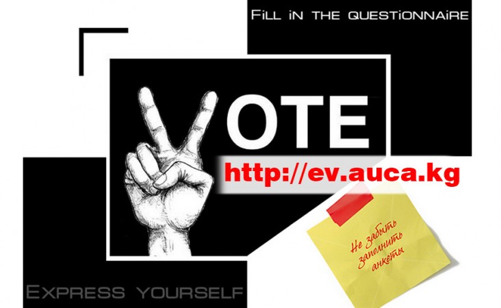 Our online course evaluation starts from April 6th to May 2nd. Please take 20 minutes of your time and fill out the online course evaluation survey! Take a chance to express your opinion on courses you are taking this semester. Evaluation process is easy and anonymous. Go to http://ev.auca.kg and don’t miss the chance!