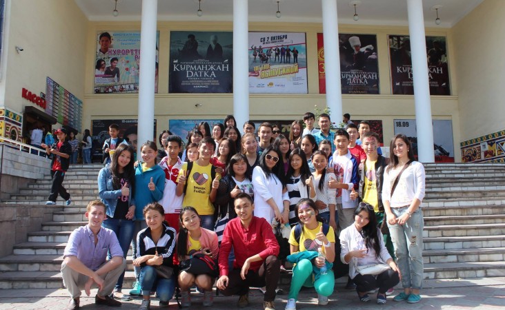 This past weekend on Saturday, September the 27th together with the assistance of director of the movie, Sadyk Sher-Niyaz and producer, Farhad Begmambetov the students, New Generation Academy (NGA) students, AUCA Alumni and AUCA employees were able to attend a special showing of the film at the Manas theatre for 80 soms. The Following the film, the director took the stage and gave a short speech on the movie to the students. The excitement continued, as the students were able to ask questions of the director and take photos with him outside.