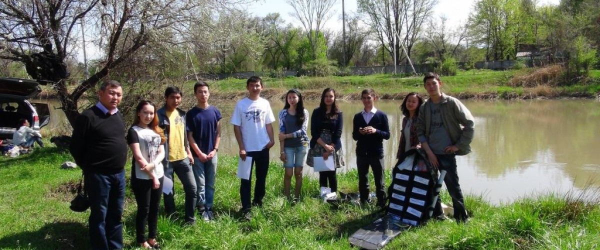 On 21st of April, students of Environmental Chemistry class went on an exciting field trip instead of the usual class lecture. In the Big Chui Canal, they collected water samples, identifying GPS coordination of the location. The Chair of the Environmental Management and Sustainable Development Program, Dr. Zheenbek Kulenbekov, and Lab Assistant/Instructor, MSc. Baktiar Asanov were leading the field work class.