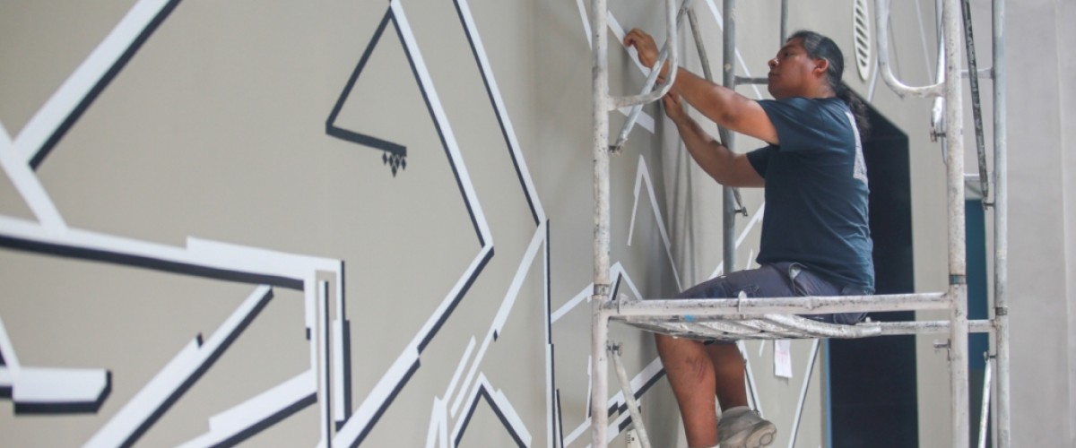 The atrium wall of AUCA’s new campus transformed within the scope of the “Artystan” project