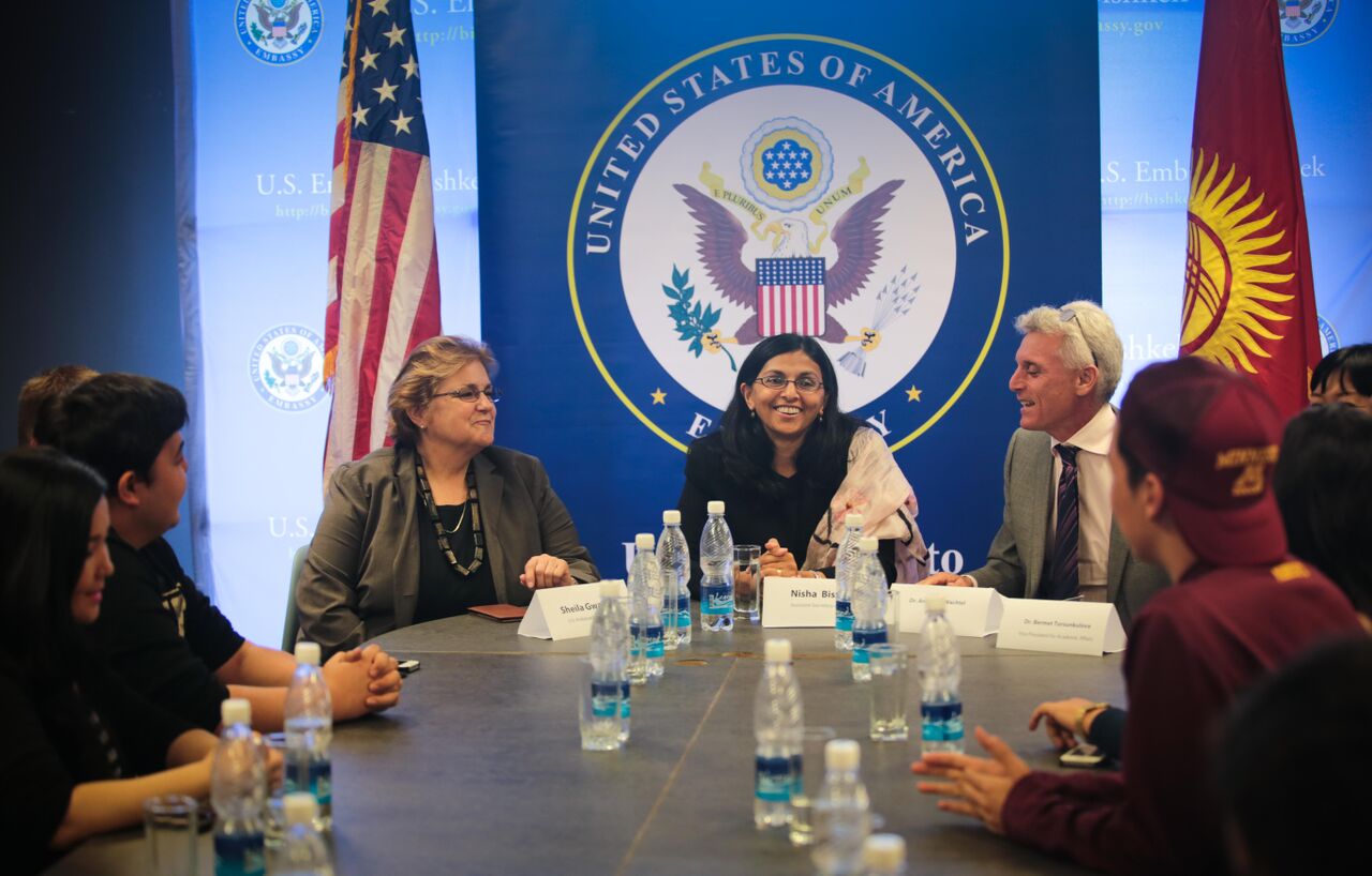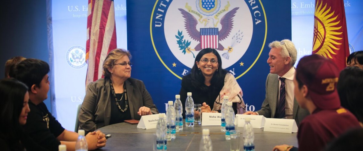 On September 8, 2015 a group of enthusiastic students from the American University of Central Asia had the opportunity to have a conversation with the U.S. Assistant Secretary of State for South and Central Asian Affairs, Nisha Desai Biswal, and the U.S. Ambassador to the Kyrgyz Republic Sheila Gwaltney.