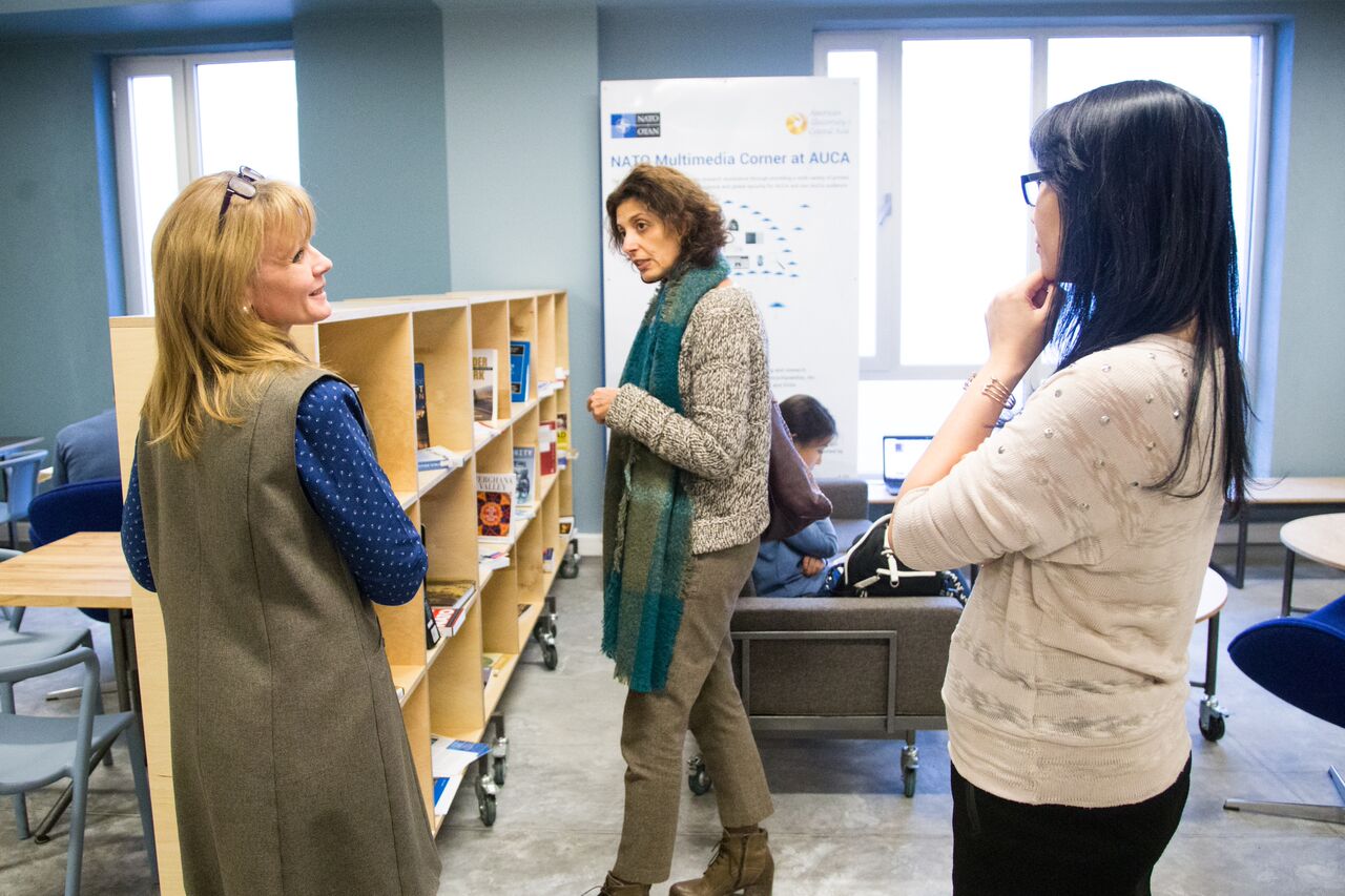 At AUCA, Puglisi saw the NATO Multimedia Corner and the University Library while touring the new campus and discussing other opportunities for future cooperation.