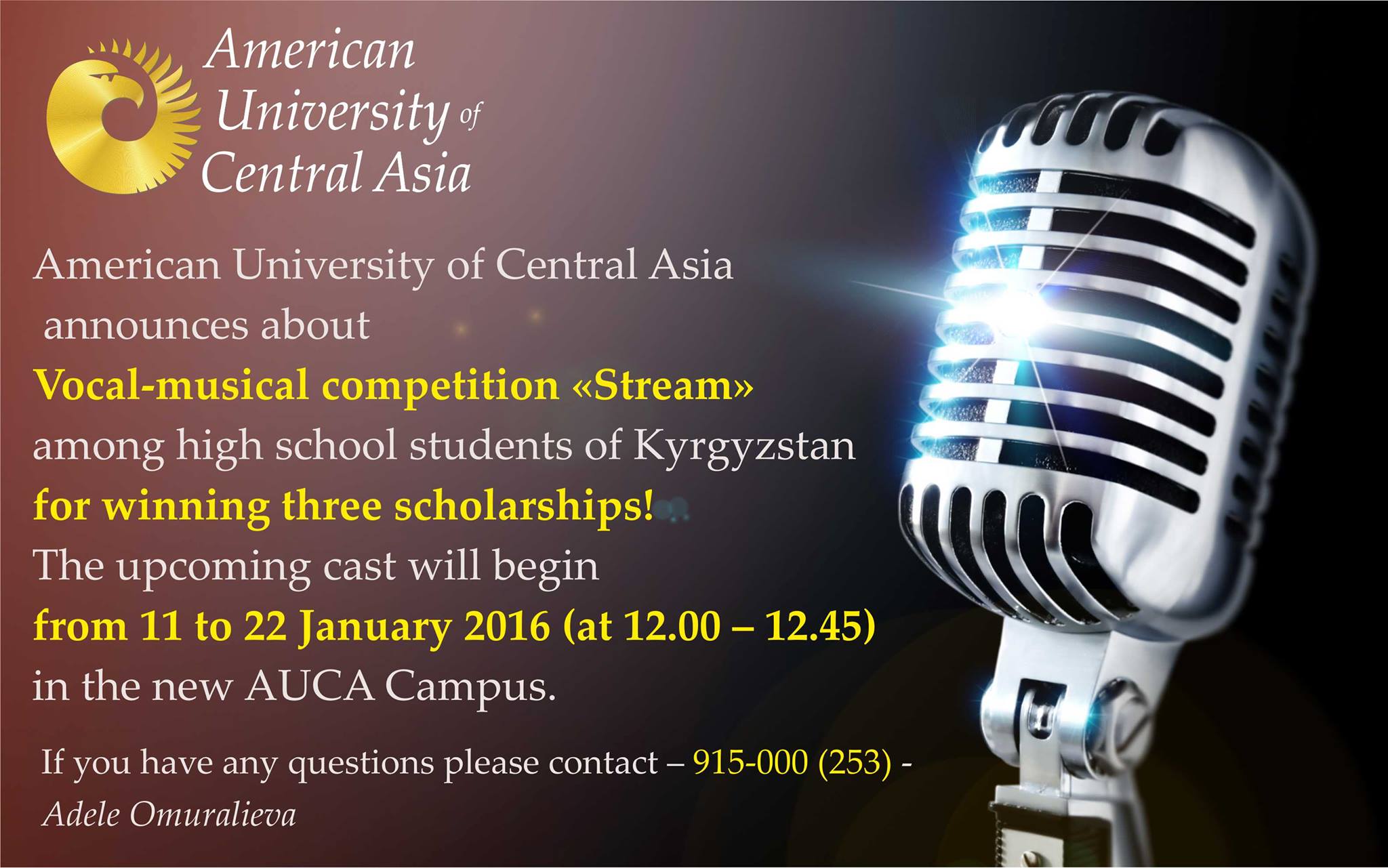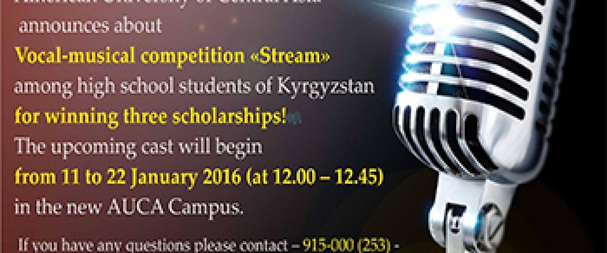 American University of Central Asia announces the “Stream” vocal-musical competition among high school students of Kyrgyzstan for winning three four-year education scholarships to study at AUCA.