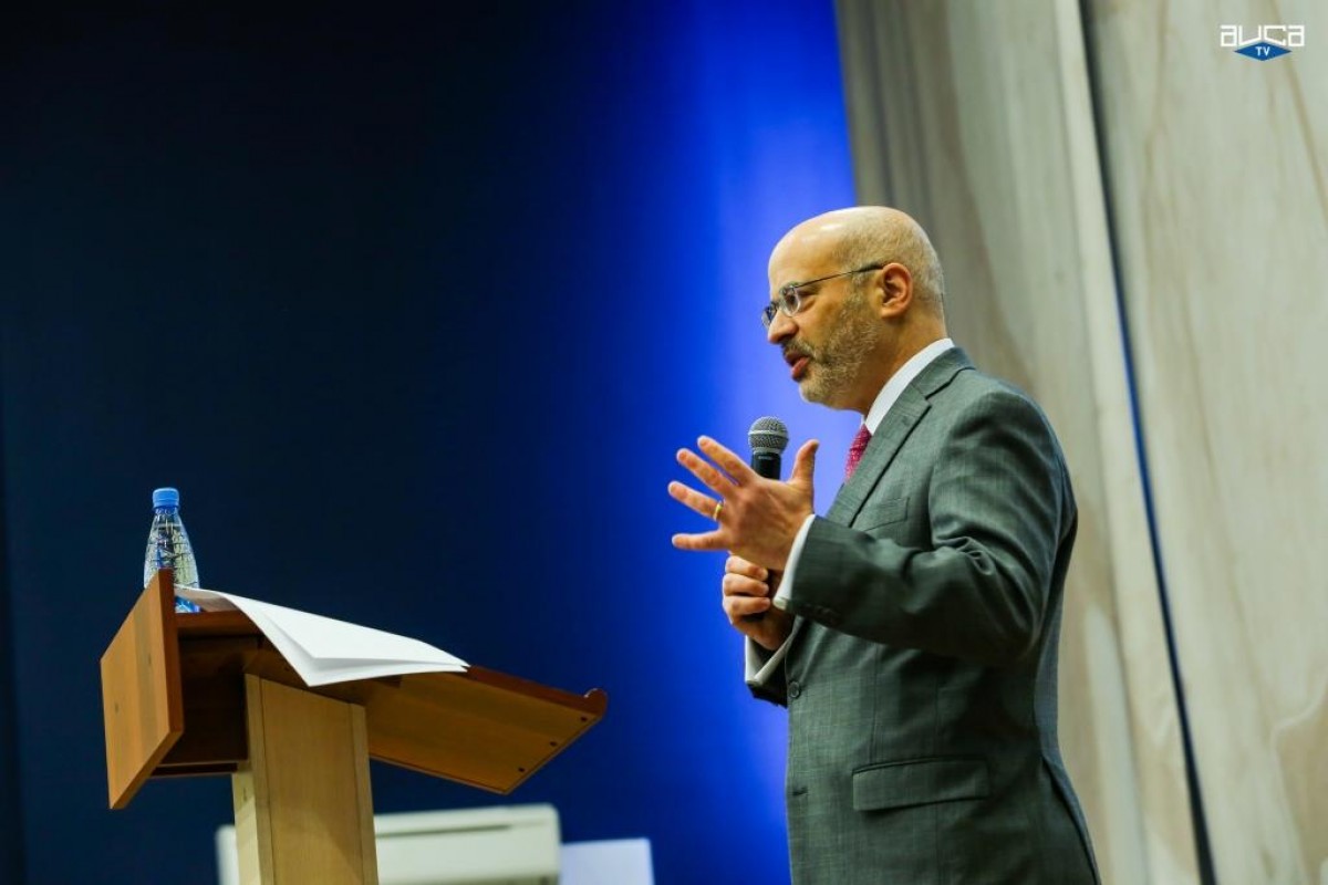 “This is not my first visit to AUCA. I came by the University to meet with Dr. Wachtel and I came back when Secretary Kerry was here. But, it is always good to come back to AUCA, and I'm very glad to be with you here today. […] I thought it would be good to spend some time with you, explaining [the US Presidential Election] to you, so you can better understand the process as you read about it in the media”, said Alan Meltzer.