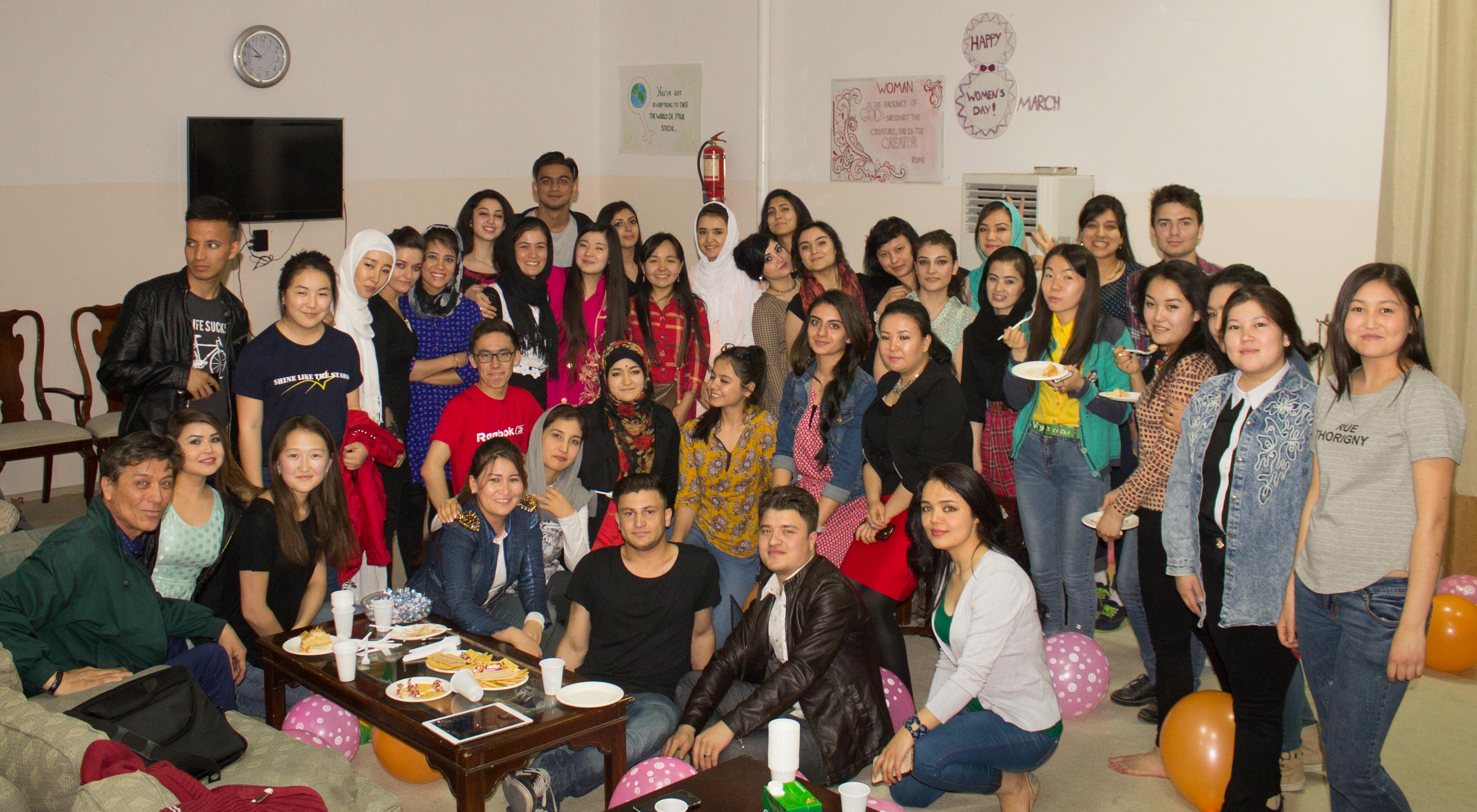 At the event, dorm residents sang songs, shared their own stories, recited poetry they had written, and played games. Professor of Russian, Usen Atabaev, congratulated the girls and performed a few songs in Farsi and Uigur. The event ended with cake.