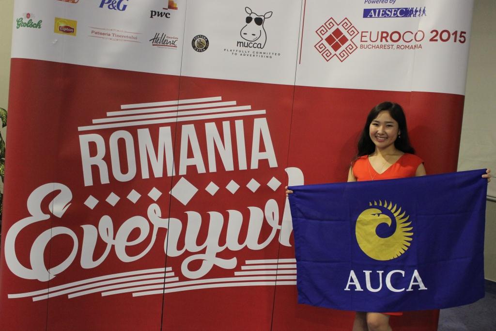 This year, EuroCo was held in Romania, a country mostly known because of a medieval prince Vlad III more often referred to as Dracula. Romania has a rich cultural history and is a paradoxically beautiful place, combining old and new buildings on the streets. The conference brought together more than 400 delegates from North America, Western Europe, Eastern Europe and Central Europe. All five days of the conference were full of interesting and productive activities and sessions. The most anticipated activity was our cultural celebration, “Global Village.” We, The Kyrgyz Delegates, showcased our dance, our national foods, souvenirs and the national headwear “Kalpak.” We presented our cultural paraphernalia to the presidents of partner countries. I met with several interesting Alumni of AIESEC International, as well as the current President and Vice Presidents of AIESEC International. They both shared with us their strategies and plans for developing an organization. In addition, there were workshops, led world-recognized companies like PwC, P&G, EY, ING. We talked a lot about Sustainable Development Goals (SDGs). There was one day, when all the delegates had the chance to find country partners for AIESEC internships. I am pretty sure that it was very productive, as we agreed with many of the European countries. Indeed, this year, AIESEC in Kyrgyzstan could establish many internships which would send students (undoubtedly many from AUCA) to several different European countries.