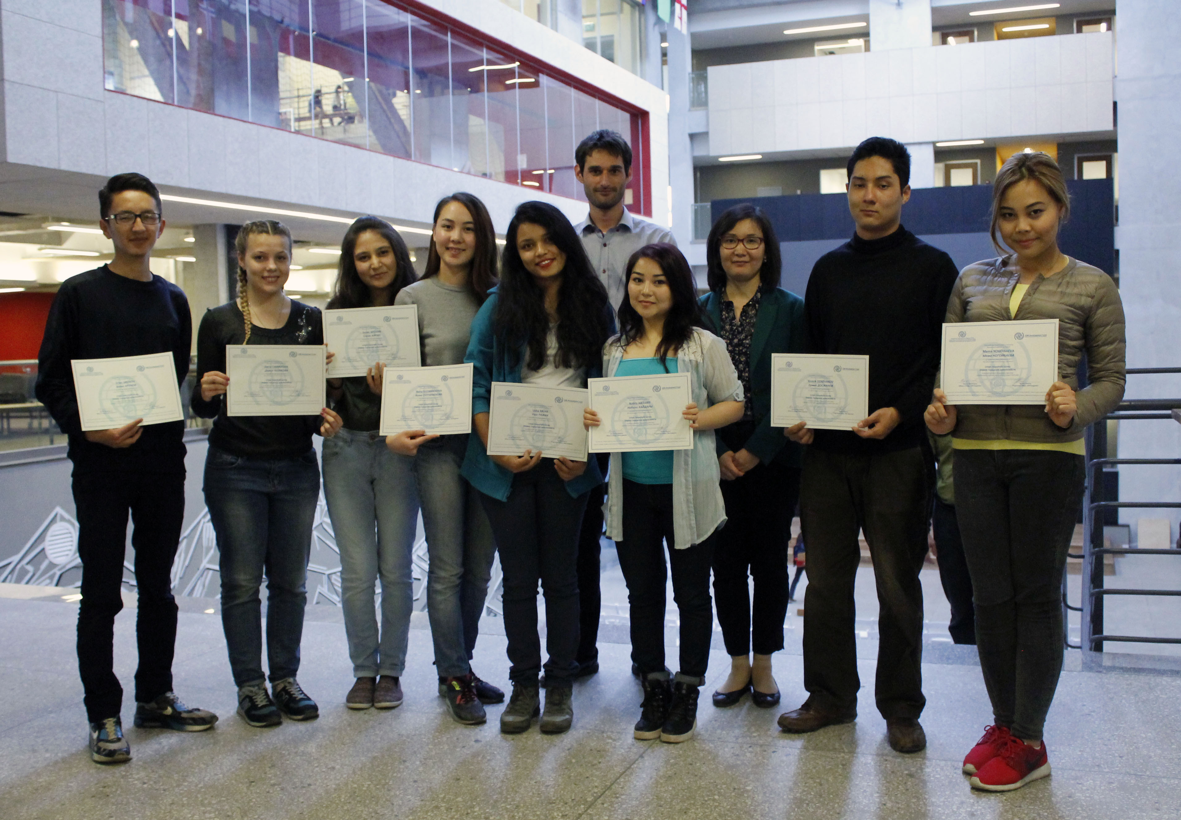 They conducted semi-structured interviews with inhabitants of Bishkek on their perceptions of internal rural-urban migration, the environmental problems the city is facing, and of environmental migrants. Moreover, they analyzed media representations of environmental migration in the international media outlets. Antoine Chandonnet, the principal investigator of the project, handed in certificates to the students for successful completion of their research assignments. IOM is very grateful to participating AUCA students, as the information collected during the semi-structured interviews will contribute to increase our understanding of environment-migration interactions in order to tackle the negative consequences of climate change on human mobility in Kyrgyzstan.