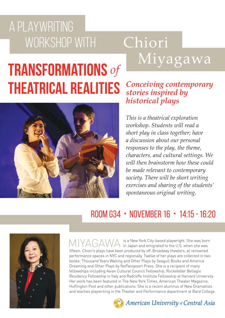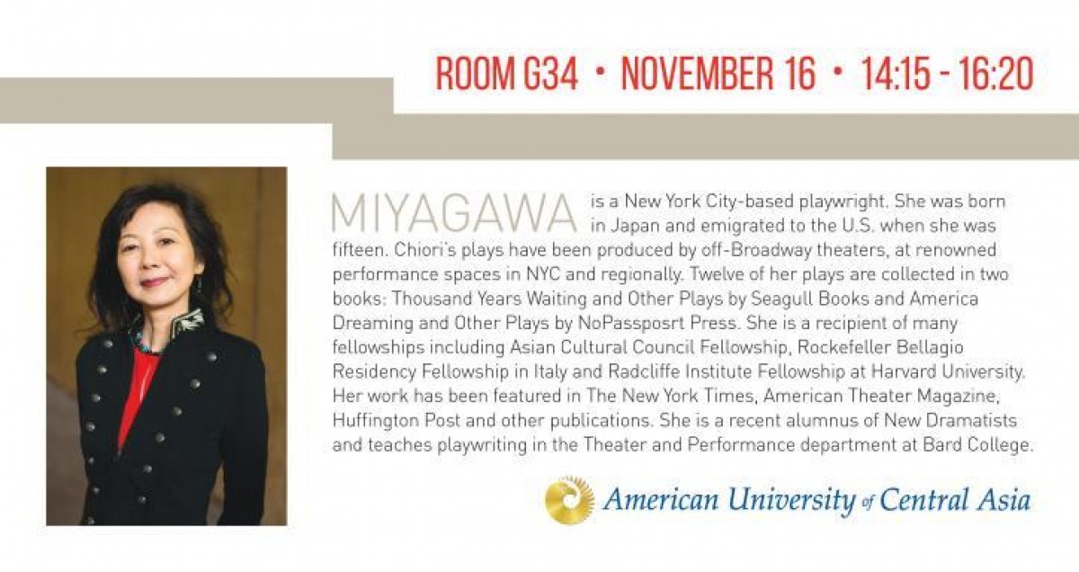 Television, Cinema and Visual Arts Department of the American University of Central Asia is pleased to invite you to Playwriting Workshop by Chiori Miyagawa.