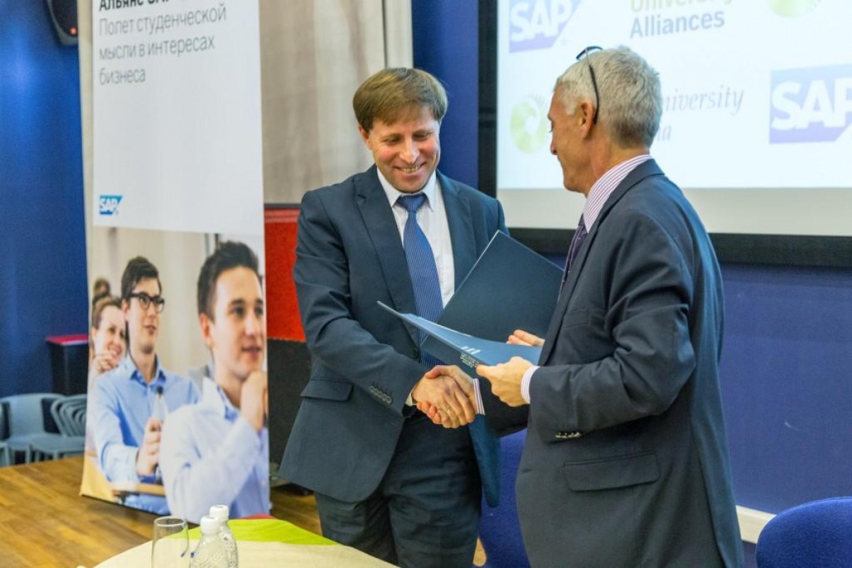 The membership ceremony also included a presentation by Belousov about digital transformation, SAP’s key activities, products and partners. SAP gives solutions and provides software for many famous companies like Apple, BMW, Harley Davidson and the German Hockey League. The presentation went more in depth about how SAP helps the German national football team prepare for matches, underscoring that SAP builds systems and applications not only for business, higher education and production companies, but also for sports, transportation, medicine and for many other spheres.