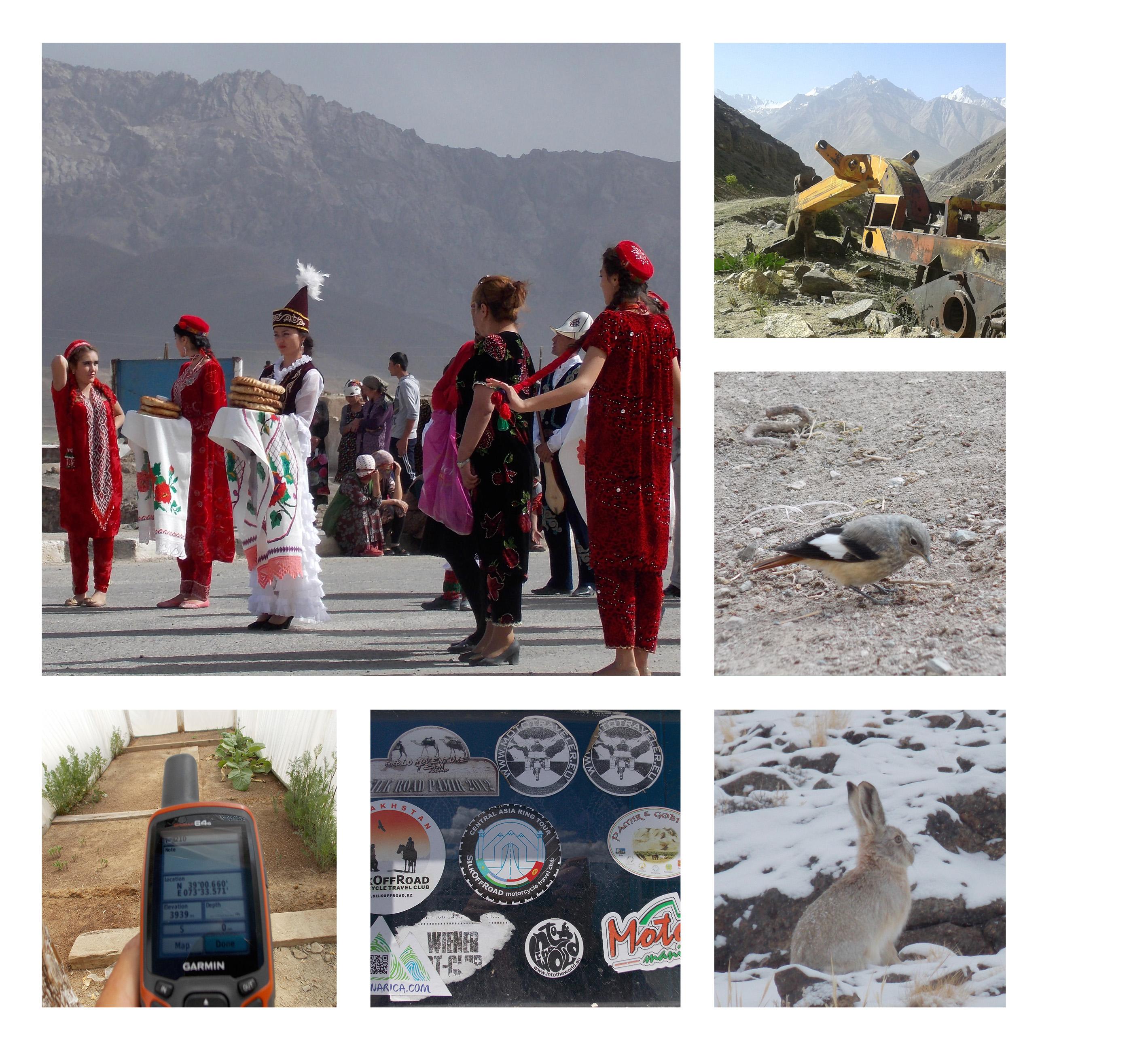 Photo 1. The District of Murgab. These images illustrate the co-existence of cultures, historical and current processes shaping the landscape, challenges in the agriculture of the Kara Kul area of Eastern Pamir (over 4000 m elevation), and the impact of global change for regional wildlife.