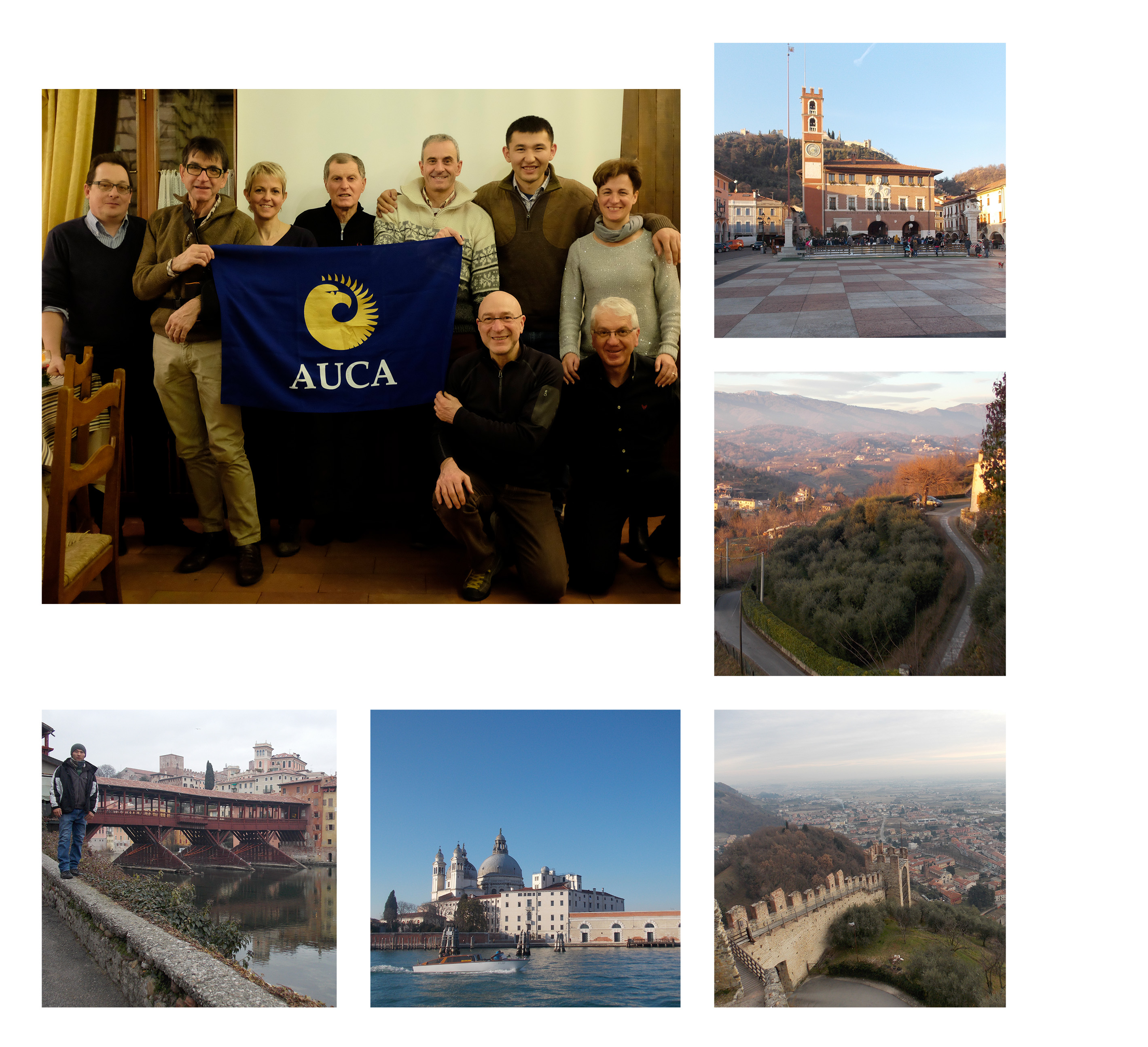 Photo 3. Italy. Friendship group photo, Bassano del Grappa, the fortress of Marostica, the old bridge in Bassano, and the Santa Maria della Salute.