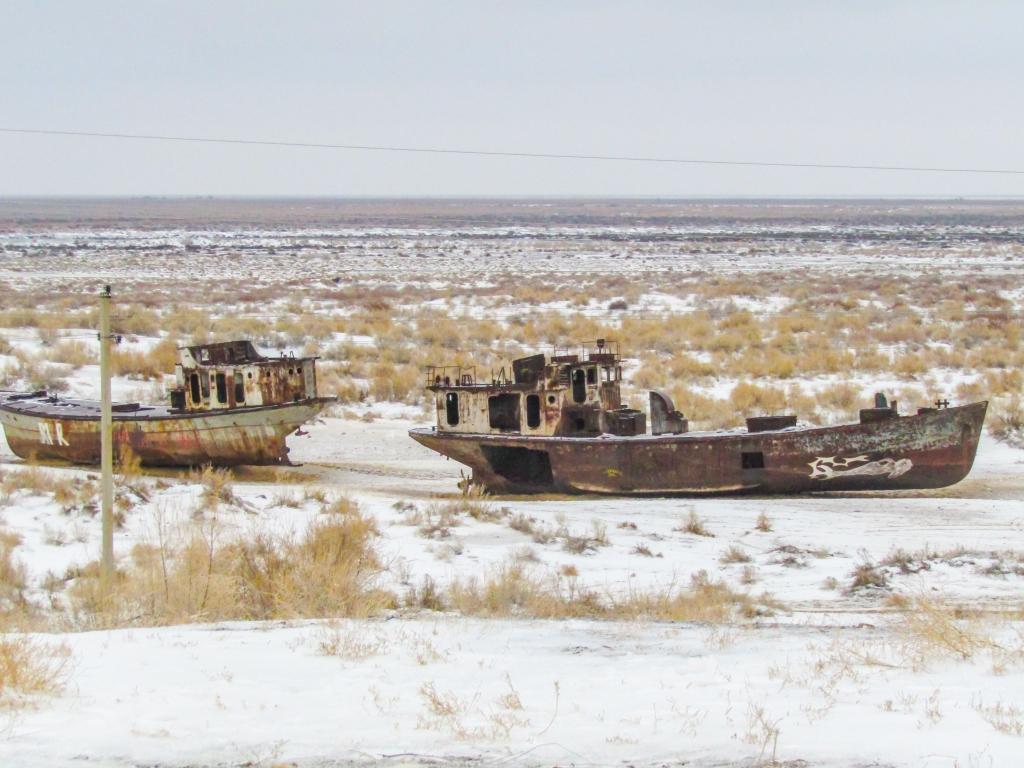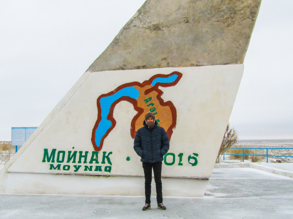 My trip to the Aral Sea took place during the last few days of 2016. The purpose of my visit was to interview locals and research the situation in the region with my own eyes. The data I collected was supposed to be used for writing my senior thesis—a project related to the rehabilitation of the Aral Sea. I believe I am the first AUCA student to visit the Large Aral Sea located in Uzbekistan. The transportation costs to the former port town of Muynak were covered by SILC (Student Intellectual Life Committee), a group which aims to support AUCA students in conducting research. Unfortunately, due to inclement weather and an absence of drivable roads to the sea, we were unable to reach the existing body of the Western Aral Sea 200 km from Muynak. We were informed that, in the case of a breakdown, there would be no one who would come to our rescue making the possibility of perishing in the middle of nowhere uncomfortably high. As a result, we decided to stay in town and conduct our research there. I was able to interview several people representing different age groups and professions and get to know their attitudes towards the desiccation of the sea. Some of those individuals were lucky enough to have seen the sea many decades ago, while others had only heard stories of a sea full of fish which used to wash the shores of Muynak. For the younger generation those stories seemed to be made up legends rather than fact.