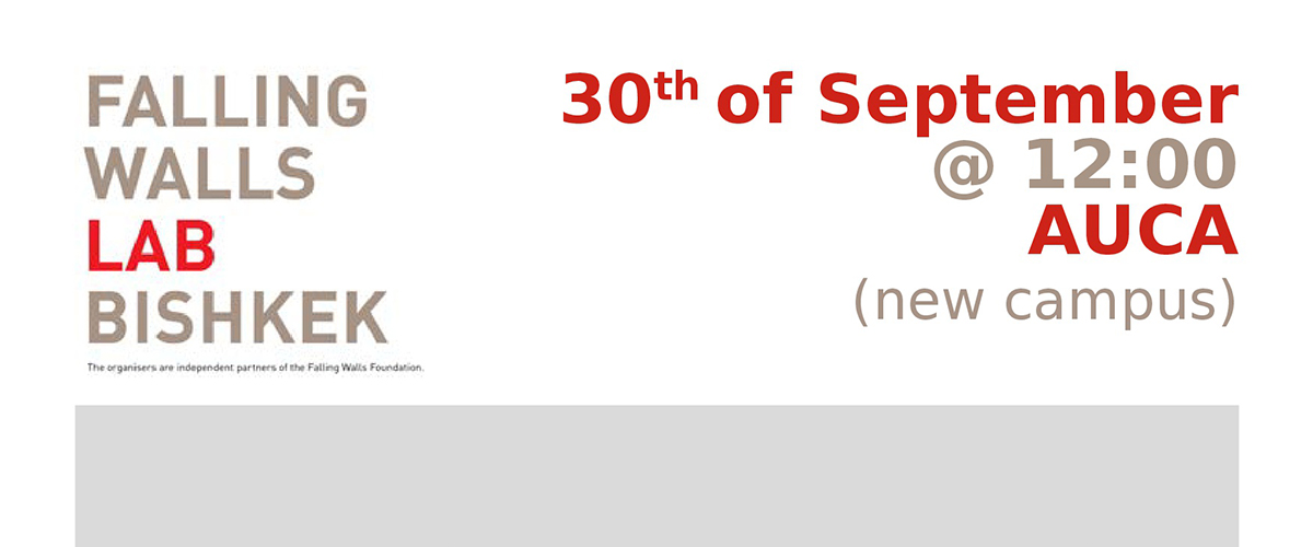 The first Falling Walls Lab Bishkek takes place at the American University of Central Asia. Bachelor and Master students, postdocs, young professionals, entrepreneurs and junior professors from six universities of Bishkek and Naryn will take part in a cutting edge science slam competition, presenting their research projects, initiatives or ideas in just three minutes. Three AUCA students are among the participants.