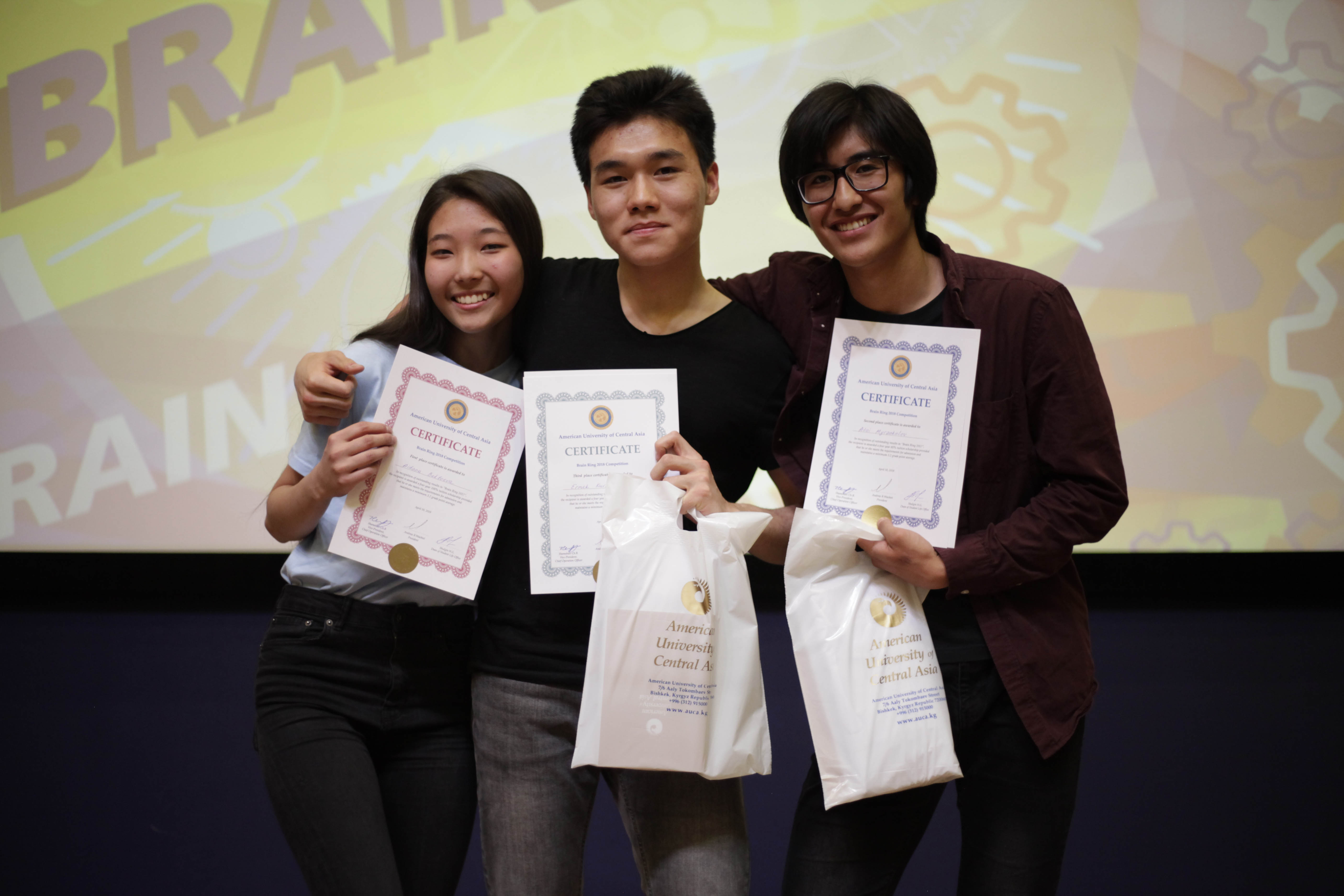 This year AUCA Brain Ring Cup went to the team of Bishkek Lyceum named after Chyngyz Aitmatov, which defeated the high school №65 in the final.
