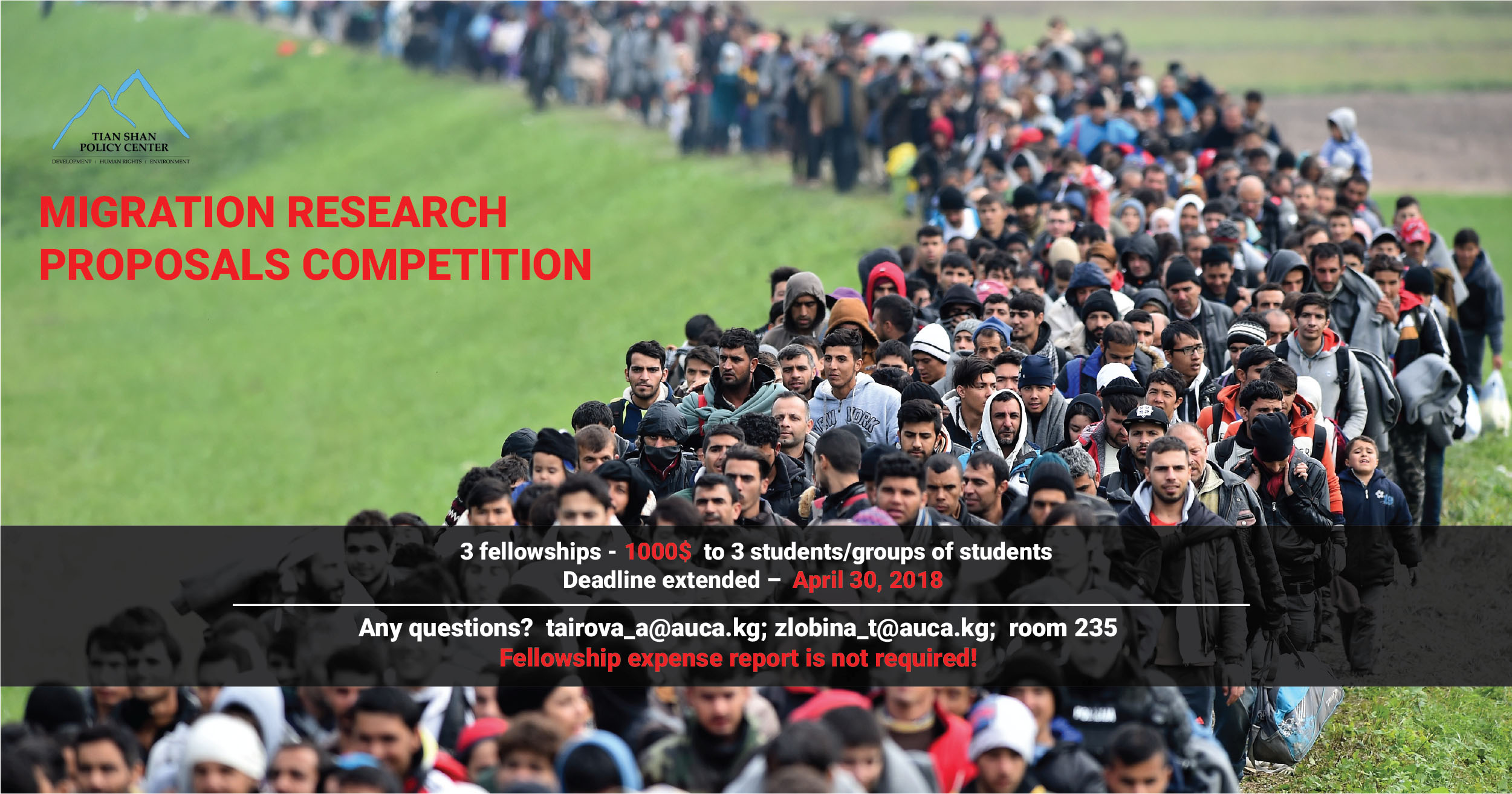 ATTENTION! DEADLINE EXTENDED!!! The Tian-Shan Policy Center (TSPC) of AUCA is delighted to announce the contest for the 3 BEST MIGRATION RESEARCH PROPOSALS