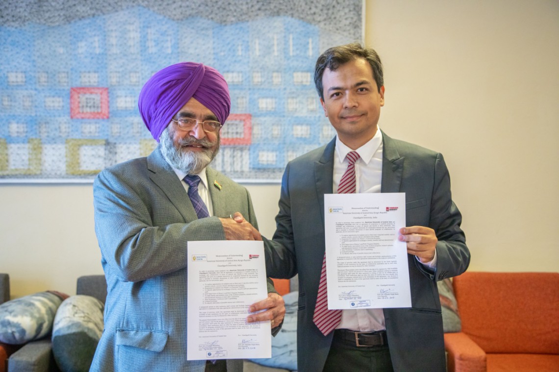 The American University of Central Asia signed a memorandum of understanding with the University of Chandigarh, a leading university in India, located in the state of Punjab. AUCA’s Vice President and Chief Operation Officer, Dr. Chingiz Shamshiev and Vice Chancellor of the Chandigarh Unniversity, Dr. Rajinder Singh Bawa put their signatures on the document on Wednesday, September 12.