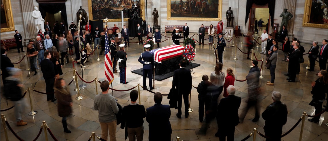Source: Aaron Bernstein/Reuters. A farewell to George Bush Sr. in the rotunda of the Capitol in Washington, December 3, 2018.