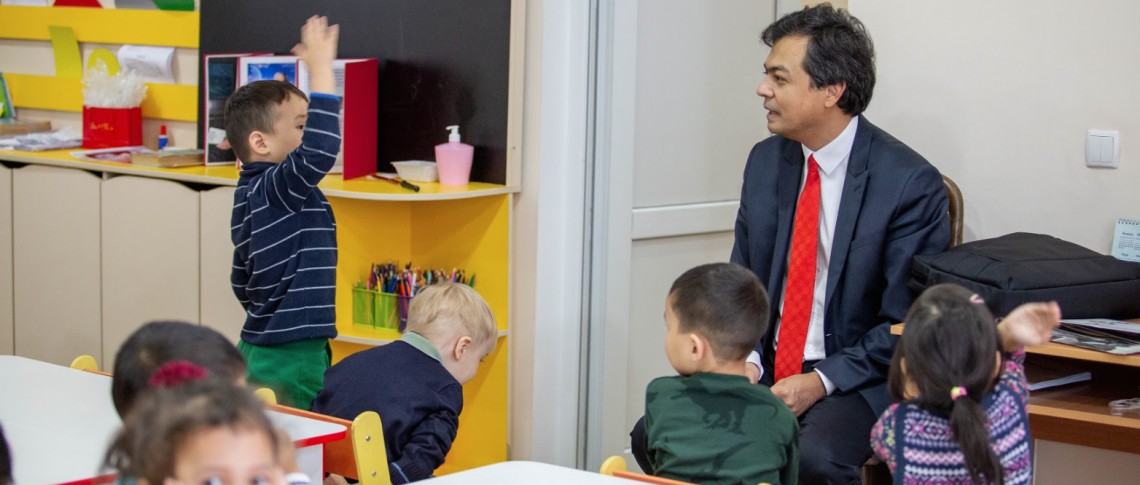 The Vice-President of the university met babies in the morning after they had a breakfast. Mr.Shamshiev told about the hard childhood of Chingiz Aitmatov, how this period of life was reflected in the writer's work and about the rules of life of our great compatriot. Also, AUCA Vice-President showed children photos from the personal archive - Shamshiev's parents were friends with Chingiz Aitmatov and named their son after the national writer.