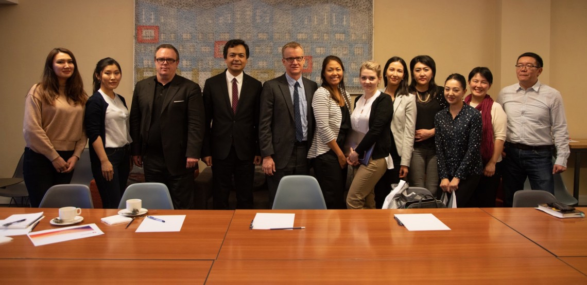 The visit started with the campus tour after which Mr. Shamshiev and AUCA Administration presented to guests the educational system of the university and future plans. Also, during the meeting, participants discussed strategic AUCA projects.