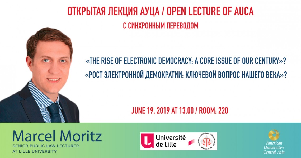 The Research Office of the American University of Central Asia is pleased to invite everyone to the open lecture«THE RISE OF ELECTRONIC DEMOCRACY, A CORE ISSUE OF OUR CENTURY»? by Marcel Moritz, a senior public law lecturer at Lille University, Head of the Master degree program in digital law (master 1 and master 2) and Vice Dean for international relations. He has been teaching IT law since 2004, including personal data law, and also practices these subjects being a lawyer at the Lille Bar (partner at Capitani & Moritz). He takes part in national and international conferences on a regular basis and has written more than 30 articles published in legal studies journals (Lamy droit de l’immatériel, Legipresse, Actualité Juridique Droit Administratif, La semaine juridique) and academic books. He speaks fluently French, German (native language) and English.