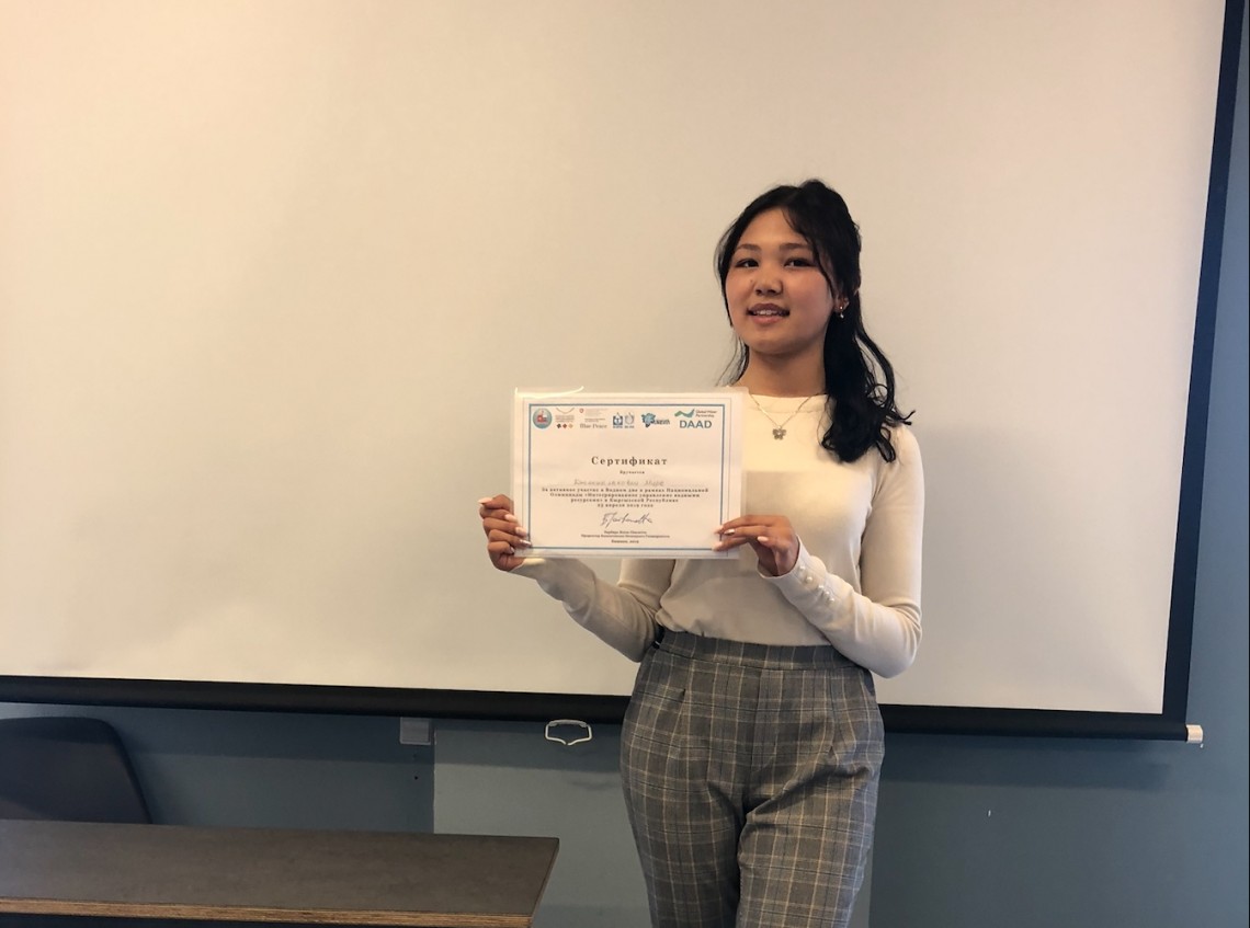 On April 23, 2019, AUCA student Mira Dzhakshylykova, EMSD-117, participated in the colloquium which took place at the Kyrgyz-Russian Slavic University in Bishkek.