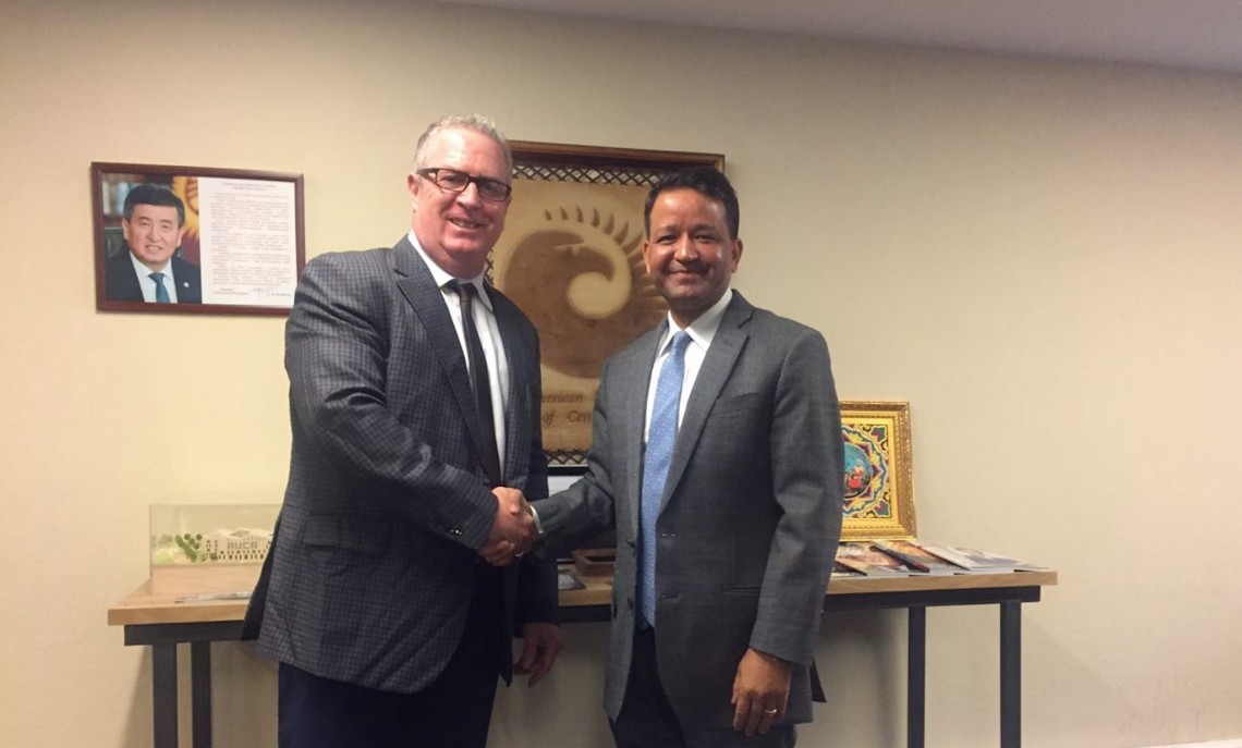 Ambassador Alok A. Dimri congratulated Dr. Kuchins on his recent appointment. They discussed numerous challenges for Central Asian security and international relations, a collaboration between AUCA and the Indian Embassy, deeper engagement between AUCA and Indian partners as well as AUCA’s desire to increase recruitment of Indian students.