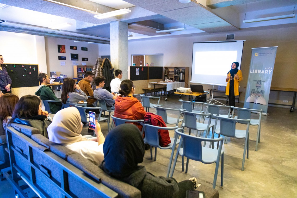 Alumni Relations office together with the AUCA Library have started a series of events called “Alumni Talks in the Library''. The AUCA alumni are invited to give presentations about their academic and professional experiences to our current students. February 30, the first guest, Sveto M. Ishoq conducted talks with students. As Afghanistan’s first Schwarzman Scholar, Sveto earned a master’s degree in Global Affairs at Tsinghua University, Beijing. Prior to that, she completed her Business Administration degree at the American University of Afghanistan.