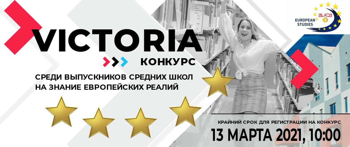 The VICTORIA contest among high school graduates of the Kyrgyz Republic, and young people under 22 years old who have a certificate of secondary education, citizens of Kyrgyzstan. The contest topic is European realities. Winner receive a scholarship to study in European Studies bachelor's program at the American University of Central Asia.