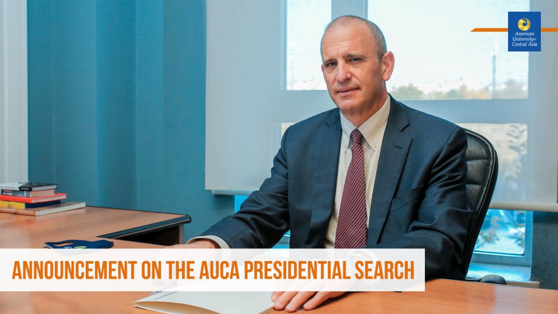Over the next several months, we will be engaged in an affirmative recruitment process to build a deep, diverse, excellent pool; to review and interview candidates and identify the next President of AUCA. Much as we will be learning more and more about the candidates as the recruitment moves forward; they in turn will be learning more and more about AUCA as the recruitment progresses. While we will be developing an excellent pool and selecting the best next leader for AUCA; our candidates and ultimately our next president will be learning more about the AUCA presidential opportunity and in the end making an affirmative decision to move their career and life to Bishkek and join us as a professional colleague and neighbor.