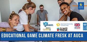 It is widely acknowledged that academia plays a crucial role in promoting sustainable behaviors and cultivating understanding about climate change. Inspired by the global Initiative SolveClimateby2030 (РешитьВопросКлиматаК2030году) of Bard College, AUCA will be the spring board for launching the internationally acclaimed climate education game Climate Fresk. AUCA‘s trained facilitators (AUCA faculty and students) will coordinate the event by involving professors, eco-activists and students in this exciting educational journey. More workshops will follow for AUCA community.