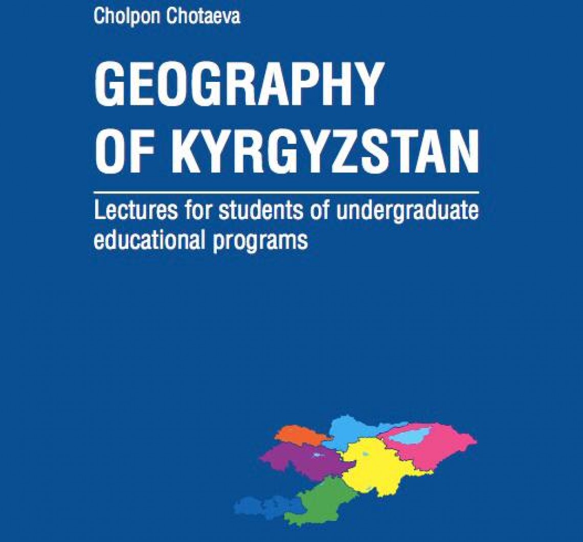 "Geography of Kyrgyzstan" was approved by the Ministry of Education and Science of the Kyrgyz Republic as a textbook for the students of higher educational institutions. Lectures were written by Cholpon Chotaeva, the Professor of the Liberal Arts and Sciences Program at the American University of Central Asia, and published with the financial support of the International Higher School of Medicine in Bishkek, Kyrgyzstan.