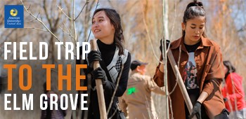 AUCA students, together with the staff and administration, planted 100 trees in an Elm Grove, in total more than 220 trees were planted. Jonathan Becker and Chyngyz Shamshiev planted trees as well, they also gave an interview to local TV channels about how important it is to preserve the environment and how the AUCA community contributes to the Elm Grove regeneration.