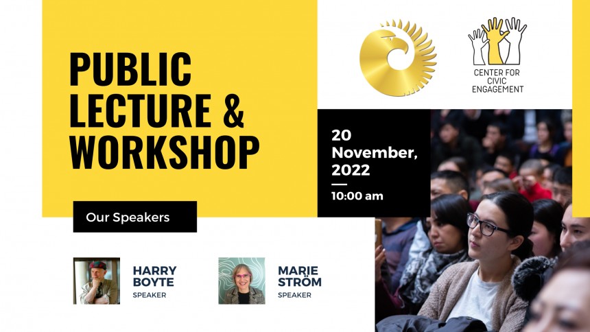 If you are interested in any of these questions, the Center for Civic Engagement (CCE) is inviting you to the public lecture and workshop led by two extraordinary scholars from the Institute for Public Life and Work (IPLW), USA - Dr. Harry Boyte and Marie Ström on November 20, 2022!