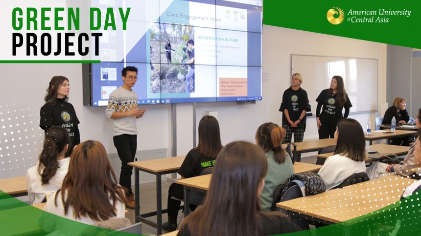 The Green day in Elm Grove was initiated by the lecturer of the department "Sociology" Zharkyn Shadymanova together with the AUCA Center for Civic Engagement. Schoolchildren from 3 metropolitan schools and volunteers from the educational center joined the event. In total, about 90 volunteers took part in planting and cleaning. The event took place on November 5th when more than 500 trees and 1000 tulip bulbs were planted.