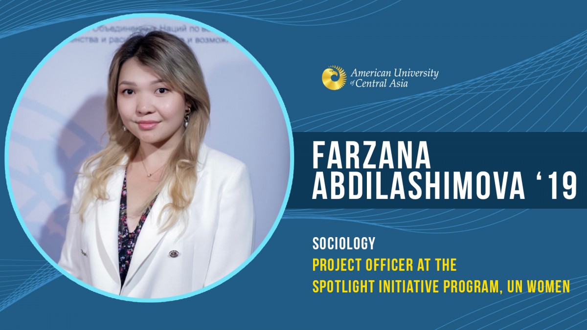 Farzana Abdilashimova graduated from AUCA in 2019 with a degree in Sociology. Upon graduation, she continued her academic journey by pursuing a master's degree at Central European University. Currently, she is holding the position of Project Officer at the Spotlight Initiative program, UN Women. In this interview, Farzana shares her favorite moments at AUCA and what was it like pursuing her career path.