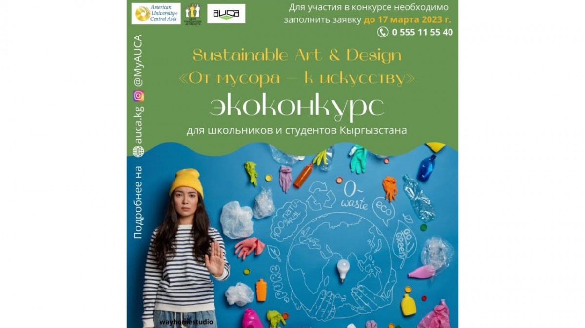 The Center for Civic Engagement of the American University in Central Asia (AUCA) is pleased to announce a creative competition among young people aged 14-30 years, dedicated to environmental protection, waste management (waste collection, recycling), upcycling, popularization of eco-conscious behavior, eco-habits in everyday life.