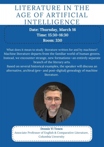 "Literature in the Age of Artificial Intelligence" talk by Dr. Dennis Yi Tenenan