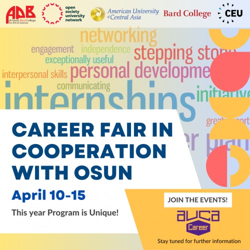 We are happy to announce that this year's Career Fair Week will be unique. For the first time, this Fair is held jointly with partner universities from OSUN: Bard college, Central European University and Al-Quds University. Students and graduates of only these four OSUN universities will have the opportunity to join specially prepared seminars within the framework of AUCA Career Fair Week 2023.