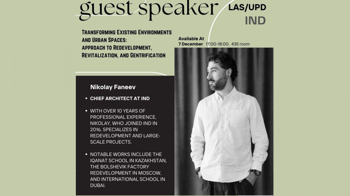 Join us for an insightful session on "Transforming Existing Environments and Urban Spaces: An Approach to Redevelopment, Revitalization, and Gentrification" featuring Nikolay Faneev, Lead Architect at IND. With over a decade of expertise, Nikolay brings a wealth of knowledge in redevelopment and large-scale projects. His portfolio boasts remarkable achievements such as the IQanat school in Kazakhstan, the Bolshevik factory redevelopment in Moscow, and an international school in Dubai. We invite you to immerse yourself in the world of architectural innovation and urban rejuvenation with Nikolay Faneev. Don't miss out on this exciting journey of transforming cities and spaces!