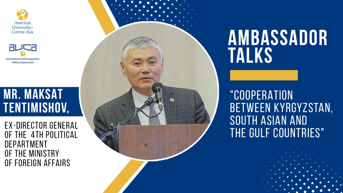 On March 6, AUCA, the Faculty of International and Comparative Politics, hosted another lecture as part of the Ambassador Talks series. The lecture featured Maksat Tentimishov, former director of the 4th Political Department at the Ministry of Foreign Affairs of the Kyrgyz Republic. The main topic of discussion was "Cooperation between Kyrgyzstan, South Asian, and Gulf countries."