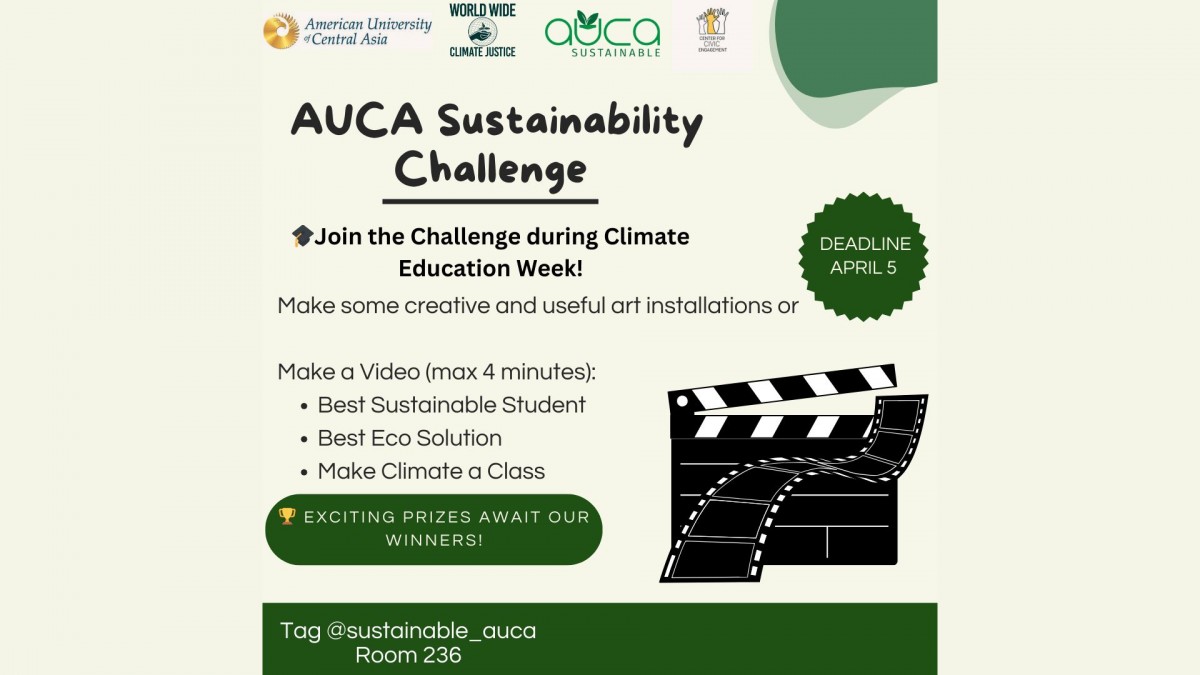 We invite you to participate in the AUCA Sustainability Challenge as part of AUCA Climate Education Week! This is a fantastic opportunity to showcase your innovative ideas and contribute to making a positive impact on our community.