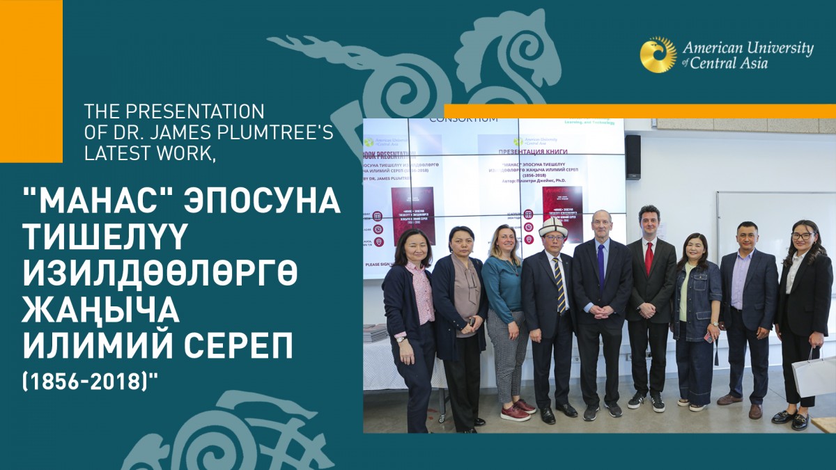 On April 12th, the AUCA Library, in collaboration with the Liberal Arts and Sciences department and the President's Office, hosted a significant event: the presentation of Dr. James Plumtree's latest work, "МАНАС" ЭПОСУНА ТИШЕЛҮҮ ИЗИЛДӨӨЛӨРГӨ ЖАҢЫЧА ИЛИМИЙ СЕРЕП (1856-2018)". The book contains the Kyrgyz translation of the work done over the last eight years by the Analyzing Kyrgyz Narratives (AKYN https://auca.kg/en/research_faculty_akyn/)  group on contemporary and historical Manas narratives.