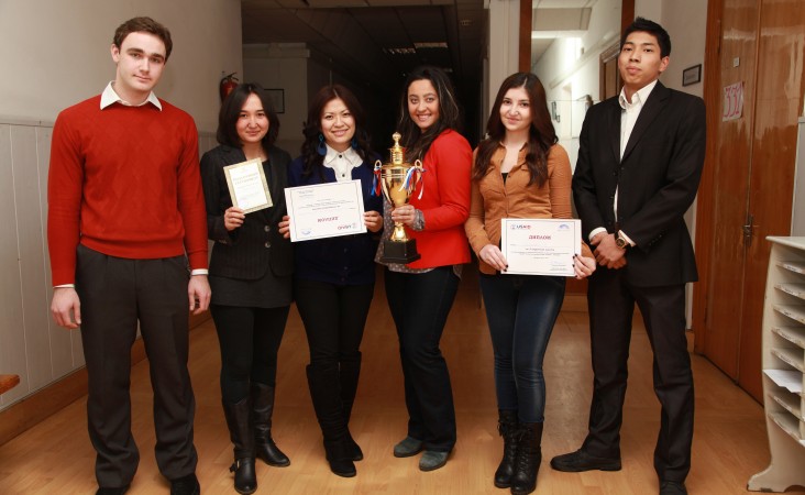 Senior students of the International and Business Law Department won a competition among the Legal Clinics of several universities of Bishkek. The competition was intense and consisted of two stages: interviewing and consulting a client. There were 13 participating teams, 3 of which were from AUCA. The team of Diora Rafieva and Sultan Tolomushev won the Challenge Cup. The cup will be AUCA’s for the entire year, until it is passed on to next winner.