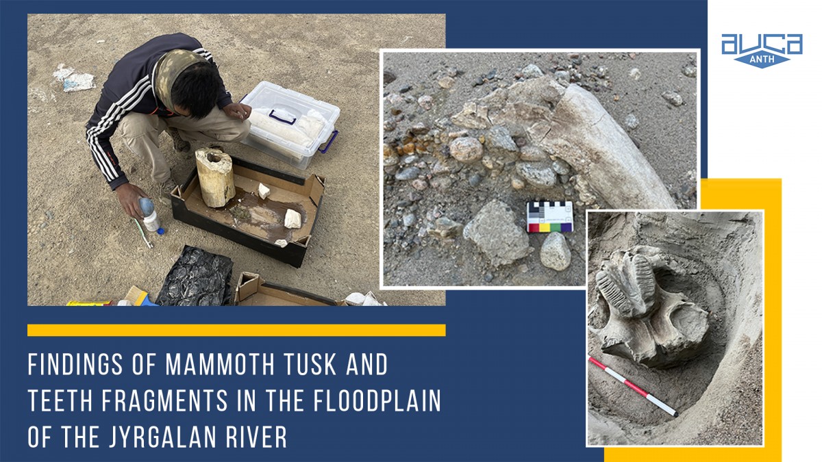 On June 2, 2024, fragments of a mammoth tusk were discovered during quarrying in the Issyk-Kul region within the floodplain of the Jyrgalan River. A team led by archaeologist Aida Abdykanova immediately went to the site of the artifact's discovery They identified two different discovery locations, situated approximately 140-150 meters apart from each other. At one of these locations, they dug a trench and uncovered the lower part of a mammoth skull with upper teeth. These findings are not the first such discovery in Kyrgyzstan. The unique artifact is stored in the American University of Central Asia laboratory, where conservation work is underway.