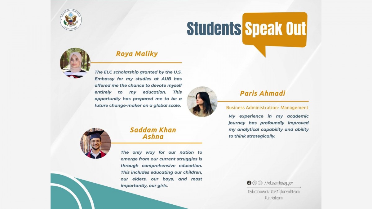 Meet Roya Maliky, Paris Ahmadi, and Saddam Khan Ashna— From transformative education at AUB to becoming global change-makers, their journeys inspire us all. #EducationForAll #LetAfghanGirlsLearn #LetHerLearn
