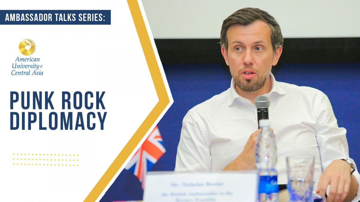 On October 11, 2024, the UK Ambassador to Kyrgyzstan, His Excellency Nicholas Bowler, shared his insights on diplomacy, the responsibilities of a diplomat, and the values that drive effective diplomatic service. During the discussion, President Timothy Edward O’Connor provided a brief overview of the ambassador’s career and the importance of “Punk Rock Diplomacy,” or People-to-People Diplomacy, emphasizing direct engagement with communities to foster mutual understanding.