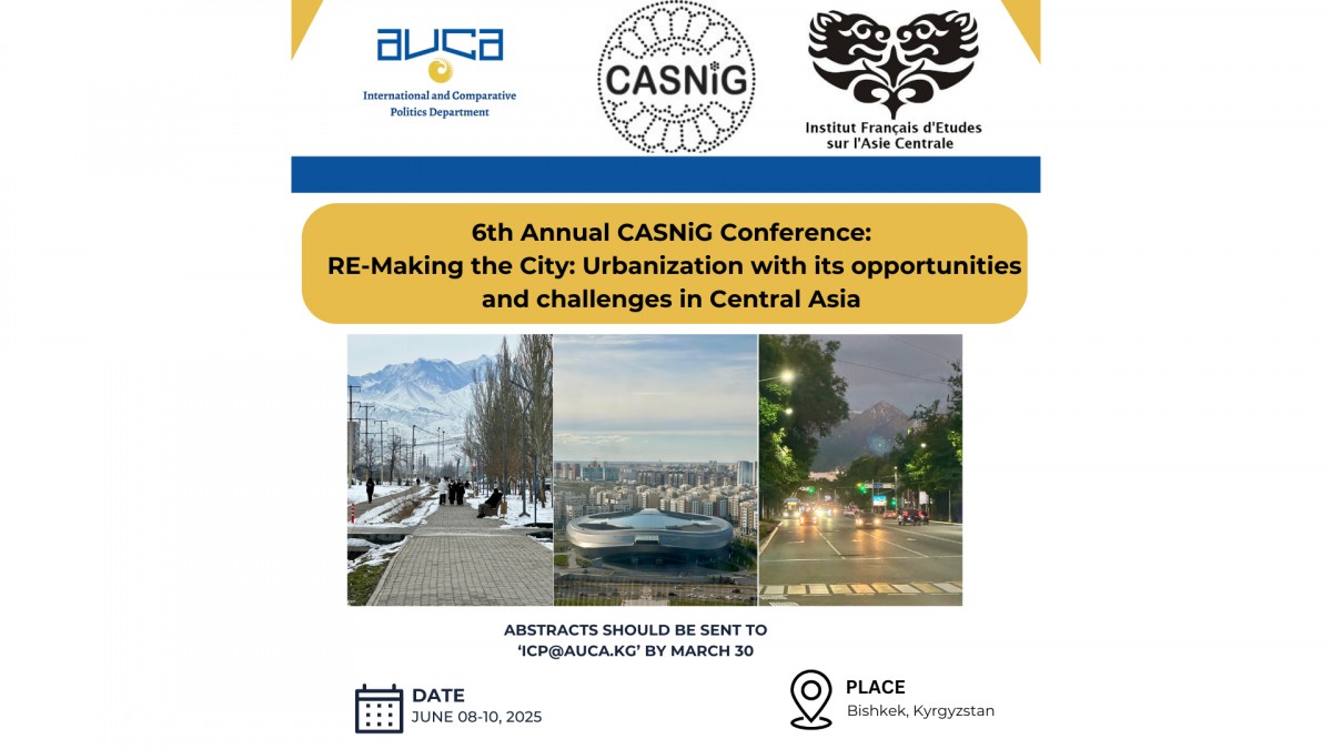The Central Asian Studies Network in Germany (CASNiG), the American University of Central Asia (AUCA) - Department of International and Comparative Politics and the Institut Français d'Etudes sur l'Asie Centrale (IFEAC) cordially invite you to submit an abstract for the 6th annual CASNiG conference on "RE-Making the City: Urbanization with its opportunities and challenges in Central Asia." The conference will take place in Bishkek on 8-10 June 2025.
