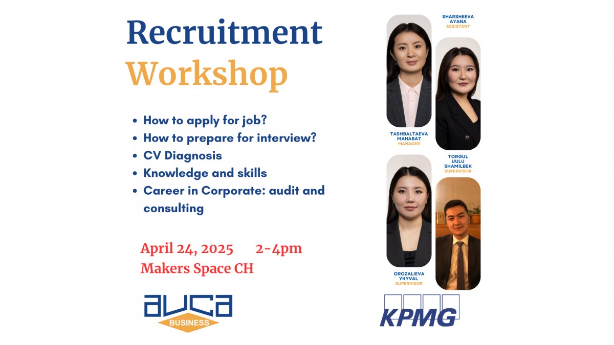 AUCA Business School invites everybody to a RECRUITMENT WORKSHOP with leading BIG Four firm KPMG!